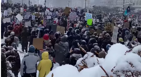 Δεκάδες χιλιάδες διαδήλωσαν στο Σικάγο, μέσα σε ακραίες καιρικές συνθήκες παγετού και χιονιά, ενάντια στην δολοφονική πολιτική του Τραμπ και της επίσημης Κου Κλουξ Κλαν που εμφανίζεται με τον μανδύα του ICE.