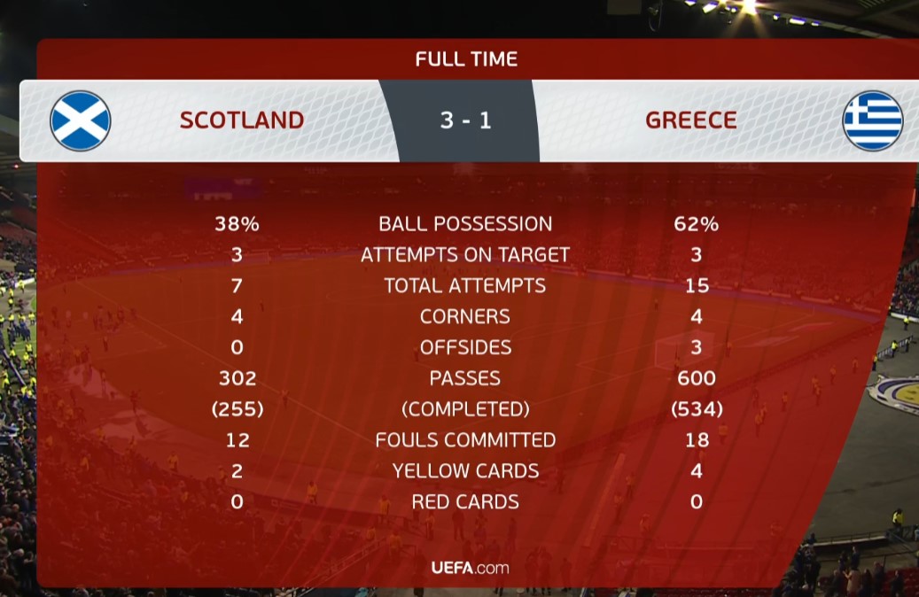 Τα λάθη της άμυνας στα δυο πρώτα γκολ, που προήλθαν από στατικές φάσεις και το λάθος του Τζολάκη έφεραν τα 3 γκολ για τη Σκωτία.