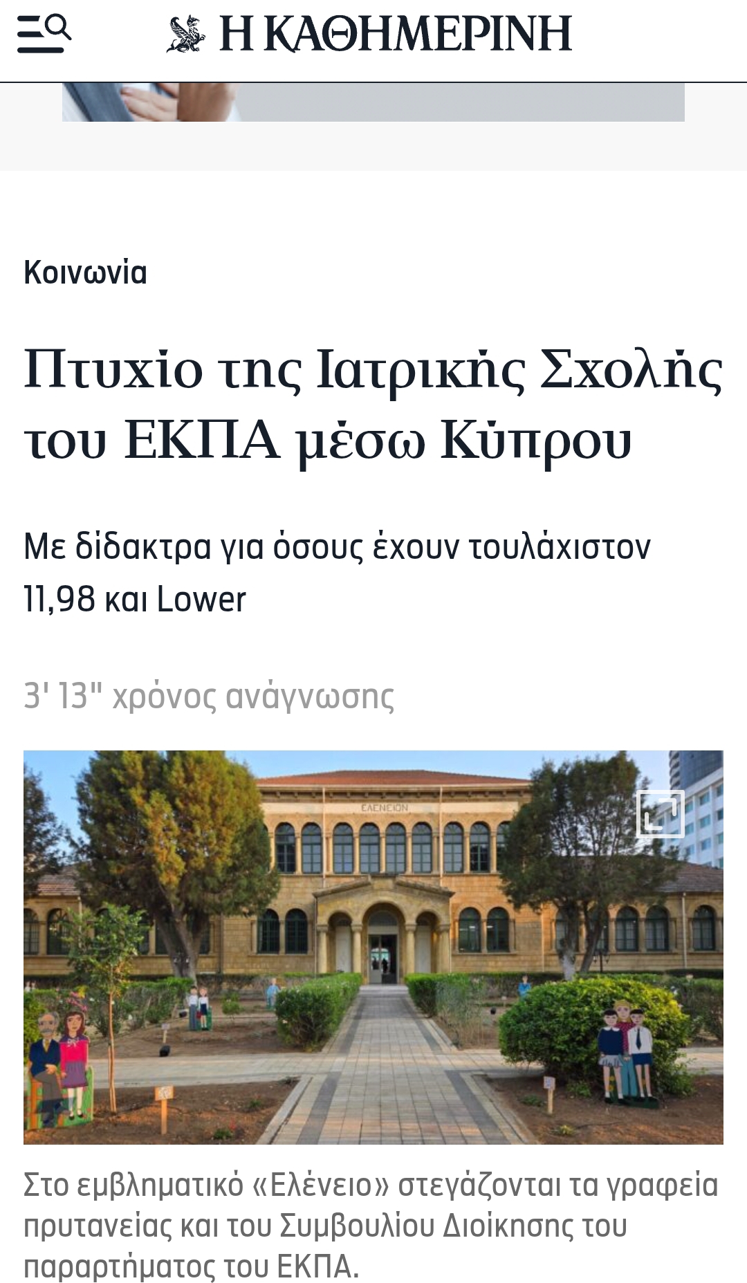 Εννοείται ότι οι εξεταστικές απαιτήσεις στην ιατρική ΕΚΠΑ Κύπρου θα προσαρμόζονται σε μαθητές του 12 που όμως έχουν 20.000 τον χρόνο.
