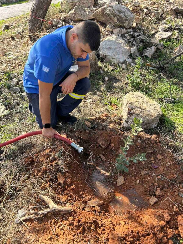 Ακολούθησε το πρώτο πότισμα με τη συνδρομή του πυροσβεστικού οχήματος «Βριλήσσια 3» του Δήμου μας.
