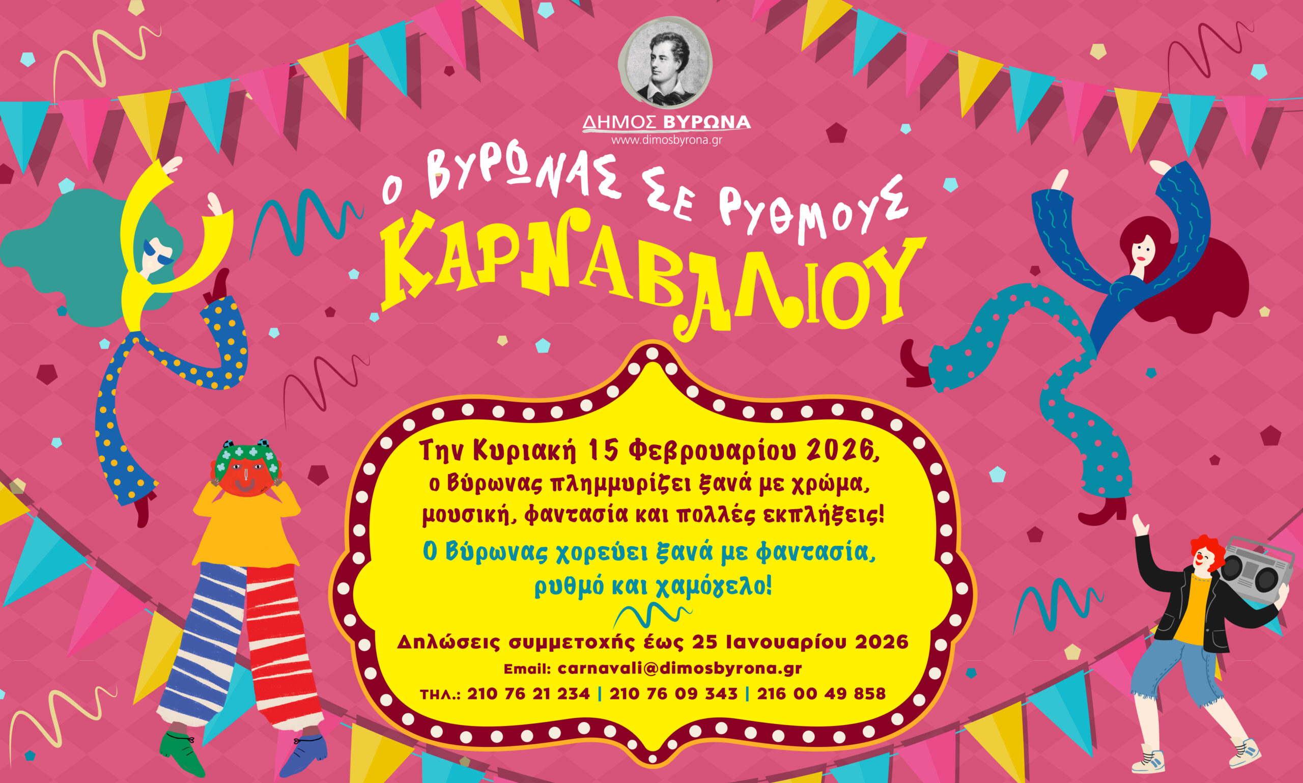 E-mail: carnavali@dimosbyrona.gr , τηλ.: 210 76 21 234 | 210 76 09 343 | 216 00 49 858