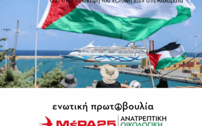 Συγκέντρωση κατά της νέας επίσκεψης του ισραηλινού κρουαζιερόπλοιου “Crown Iris” στην Καλαμάτα διοργανώνουν φορείς και Σύλλογοι Αλληλέγγυων στον Παλαιστινιακό λαό. Όπως είναι γνωστό από το καλοκαίρι κιόλας, το εν λόγω κρουαζιερόπλοιο μεταφέρει σε ταξίδια κρουαζιέρας και χαλάρωσης στρατιώτες του IDF που συμμετείχαν ενεργά στις σφαγές των Παλαιστινίων στη Γάζα και τώρα αναζητούν…λίγη ξεκούραση από το … Συνεχίστε να διαβάζετε το Συγκέντρωση κατά της νέας επίσκεψης του ισραηλινού κρουαζιερόπλοιου “Crown Iris” στην Καλαμάτα – Έρχεται ανήμερα της Εθνικής Επετείου.