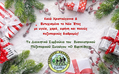 Ο Σύλλογος Πεζοπόρων Χαλανδρίου “Ο Ευριπίδης“ εύχεται σε όλα τα μέλη, τους φίλους και τους συνοδοιπόρους του Καλά Χριστούγεννα, με υγεία, χαρά και όμορφες στιγμές, καθώς και ένα Ευτυχισμένο Νέο Έτος, γεμάτο εμπειρίες, αισιοδοξία και νέες διαδρομές!