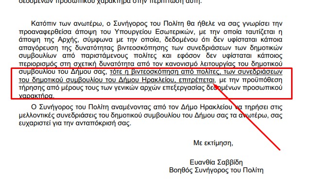 Απάντηση – κόλαφο στη συμπεριφορά της δημοτικής αρχής του Ηρακλείου Αττικής για την δυνατότητα βιντεοσκόπησης από πολίτες της συνεδρίασης του Δημοτικού Συμβουλίου δίνει ο Συνήγορος του Πολίτη: “η βιντεοσκόπηση από πολίτες, των συνεδριάσεωντου δημοτικού συμβουλίου του Δήμου Ηρακλείου, επιτρέπεται” αναφέρει ρητά στην απόφασή του που στέλνει στον Δήμαρχο Νίκο Μπάμπαλο και στον Πρόεδρο του ΔΣ Νώντα Σπυρόπουλο.