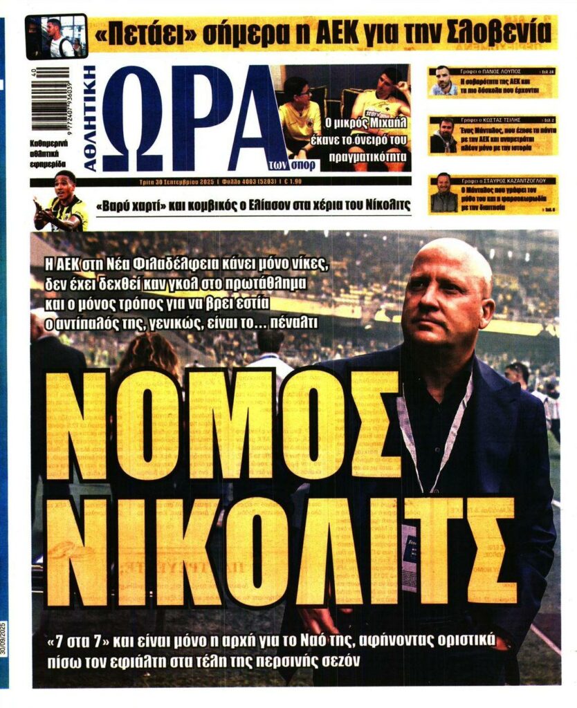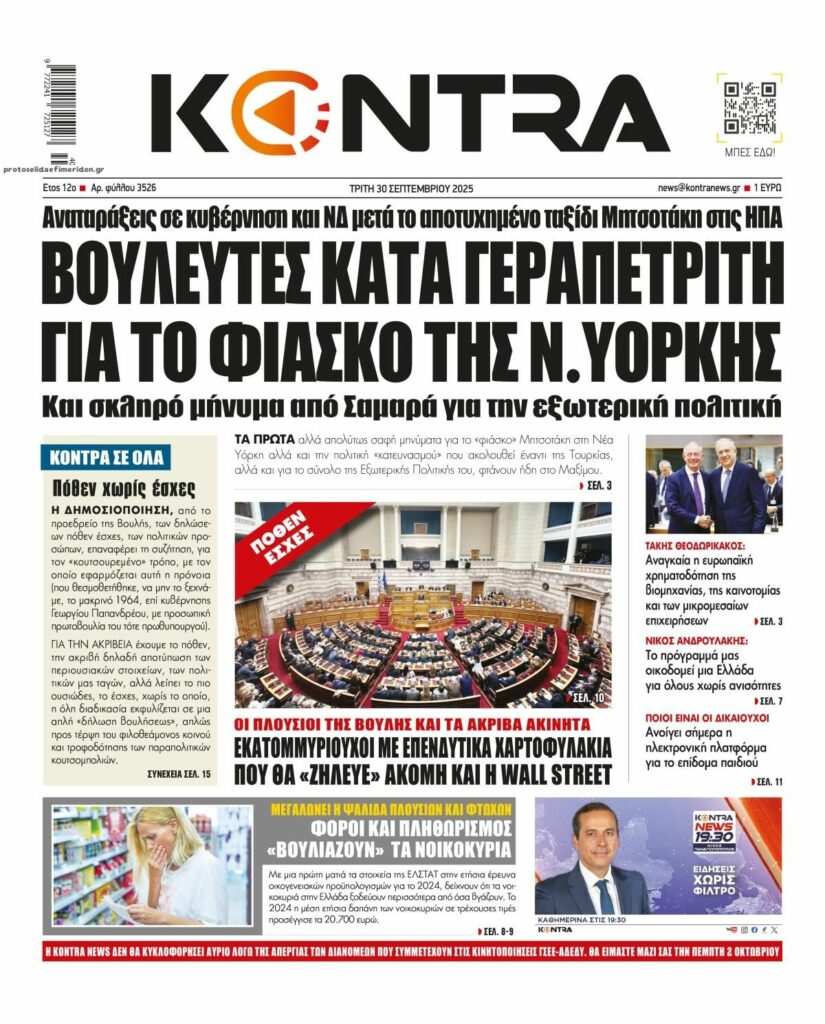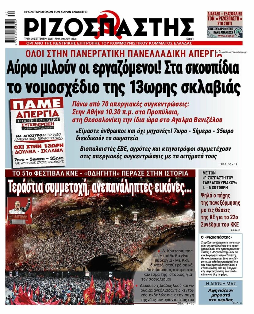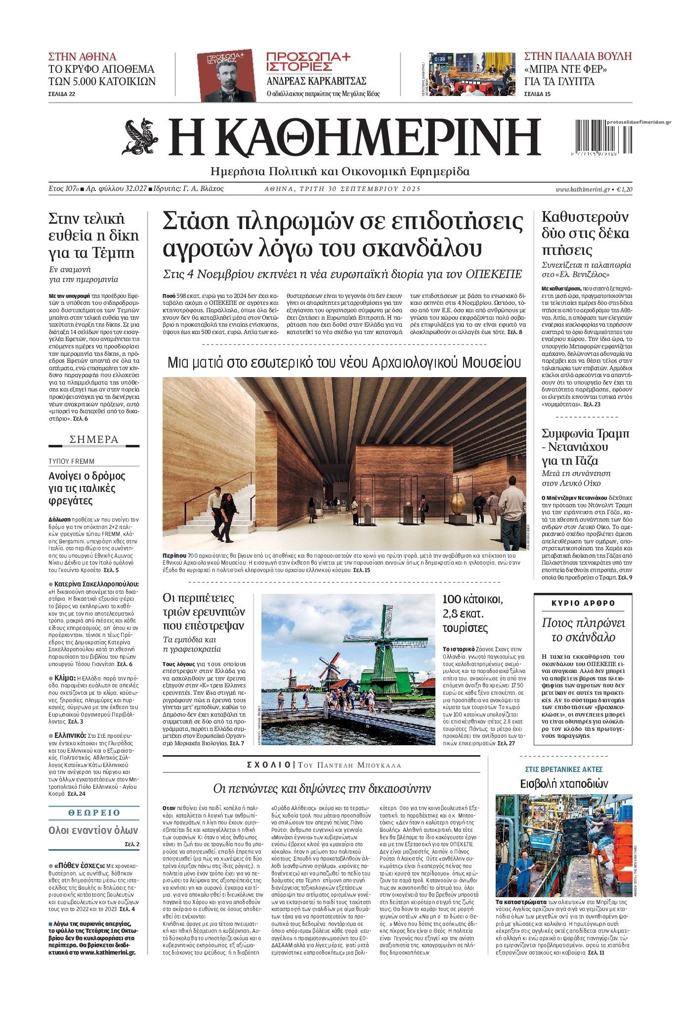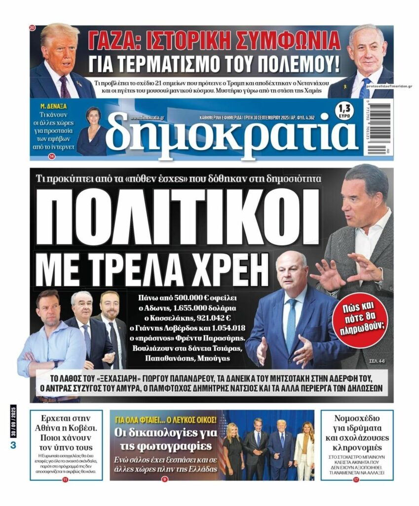 Τα πρωτοσέλιδα των εφημερίδων 30.09.2025
