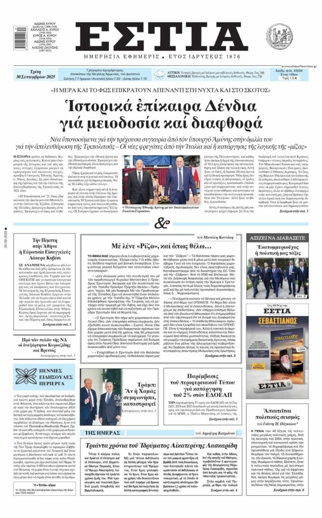Τα πρωτοσέλιδα των εφημερίδων 30.09.2025 - EKFRASI.net