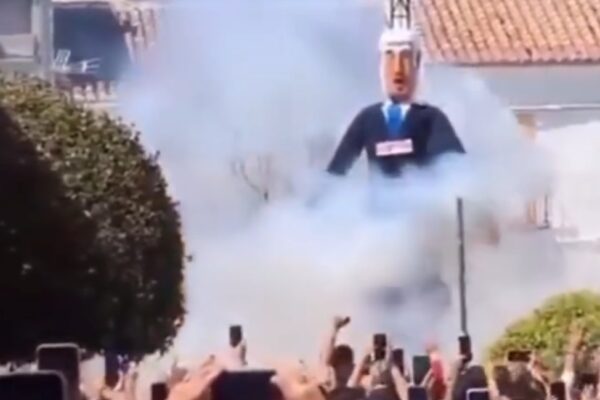 Οι απειλητικές δηλώσεις του πρωθυπουργού του σιωναζιστικού Ισραήλ Μπέντζαμιν Νετανιάχου κατά της Ισπανίας για τη σταθερή στάση της απέναντι στον πόλεμο “απαντήθηκε” με το “κάψιμο του Νετανιάχου”. Ενα ομοίωμα που παραδοσιακά καίγεται, του Ιούδα, αντικαταστάθηκε από την πιο μισητή φιγούρα των καιρών μας, τον Μπέντζαμιν Νετανιάχου