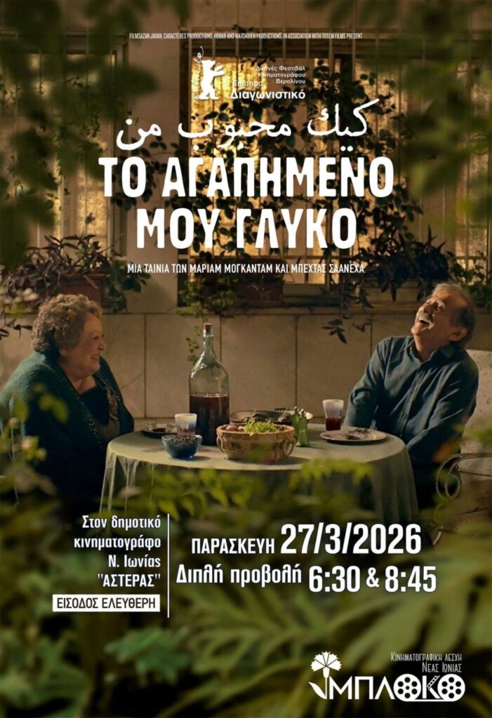Η ταινία Το Αγαπημένο μου Γλυκό θα προβληθεί την Παρασκευή 27 Μαρτίου και ώρες 6.30 και 8.45 μ.μ.στο δημοτικό κινηματογράφος Ν. Ιωνίας «ΑΣΤΕΡΑΣ» (Ασκληπιού 4) από την Κινηματογραφική λέσχη Ν. Ιωνίας Μπλόκο